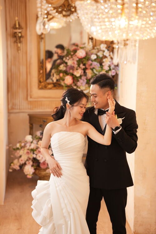 “Tiếng trái tim đôi ta đập thật nhanh. Thì thầm lời yêu thương. Ngày tình về chung đôi...” Sau bao nhiêu chờ đợi, cuối cùng ngày vui của chúng ta cũng tới rồi. Cảm ơn vì mình đã luôn là một phần trong cuộc sống của nhau. Em và anh không chỉ là người yêu mà chúng ta còn là tri kỷ. Ngày hôm nay, em sẽ là cô dâu của anh và sau này sẽ là mẹ của các con anh.